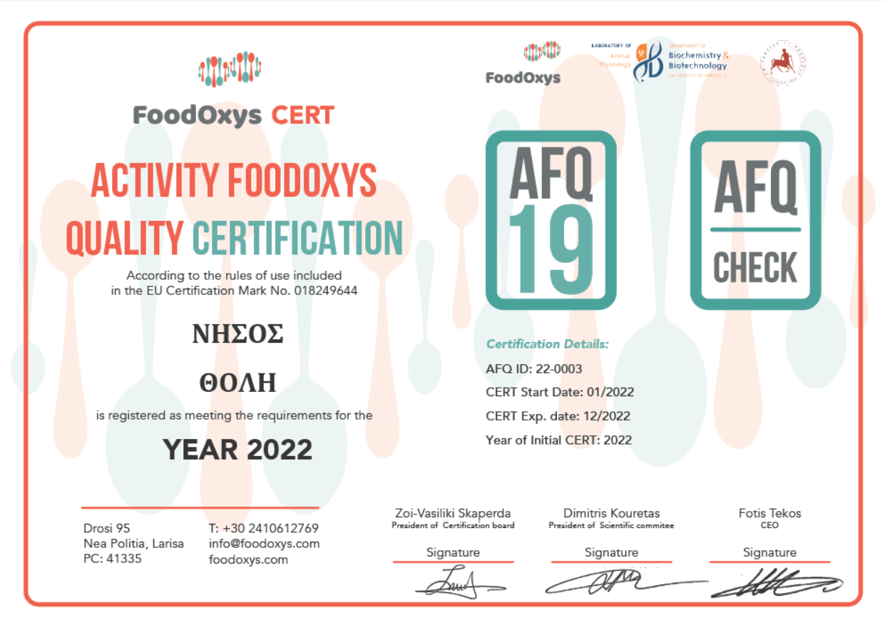 NISSOS adopts the new European AFQ Certification Mark of FoodOxys