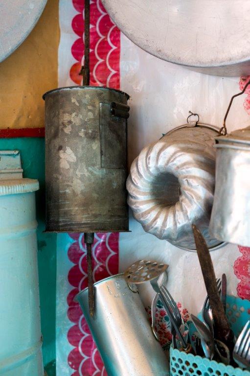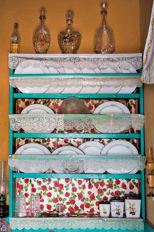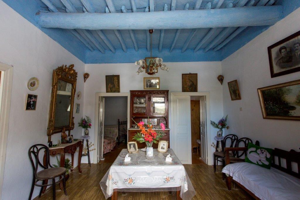 Τα έπιπλα ήταν λιτά, λειτουργικά και τα άκρως αναγκαία, από ξύλα του νησιού. Στους τοίχους άφηναν εσοχές-“θυρίδες” για ν´ακουμπάνε πράγματα .